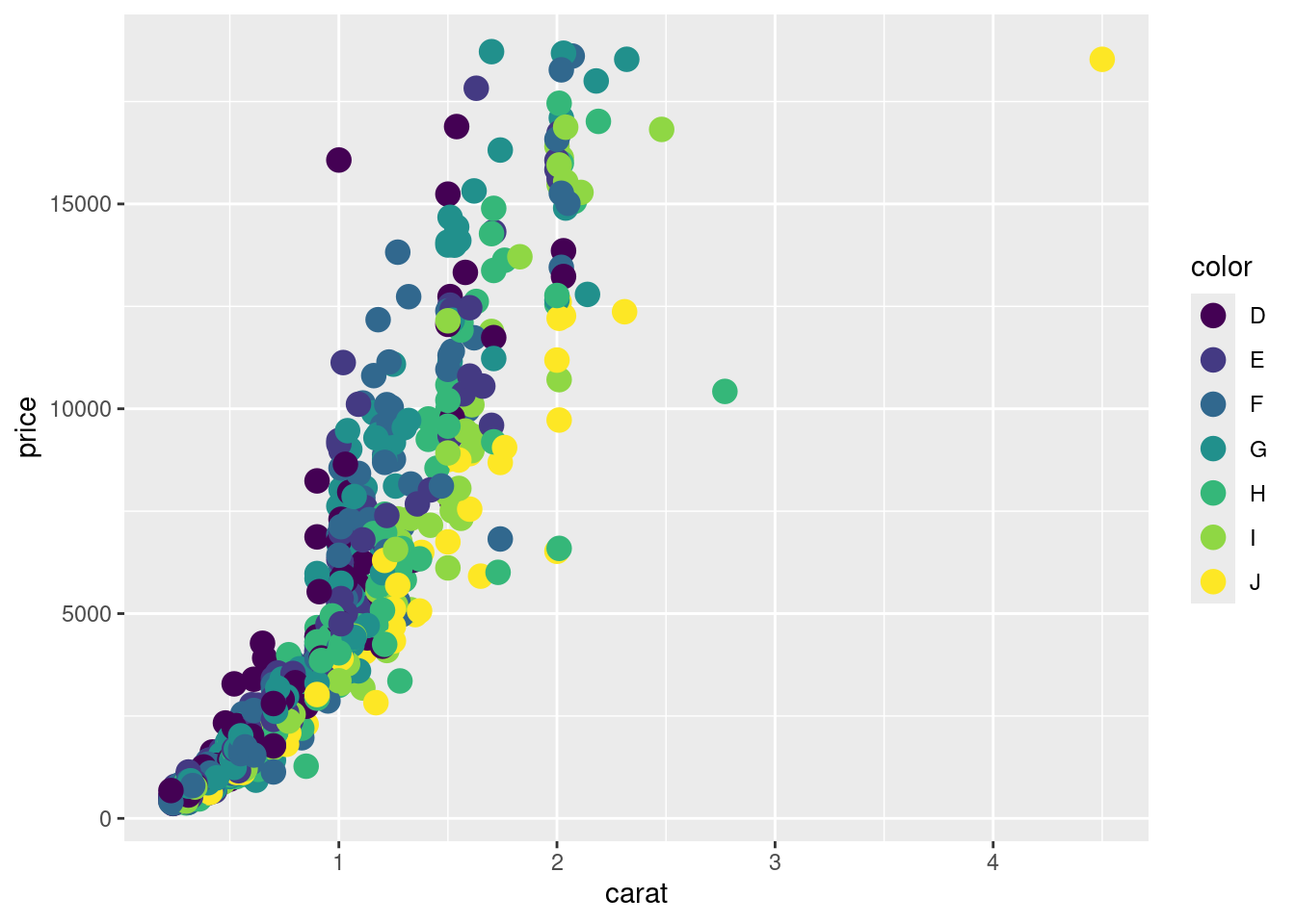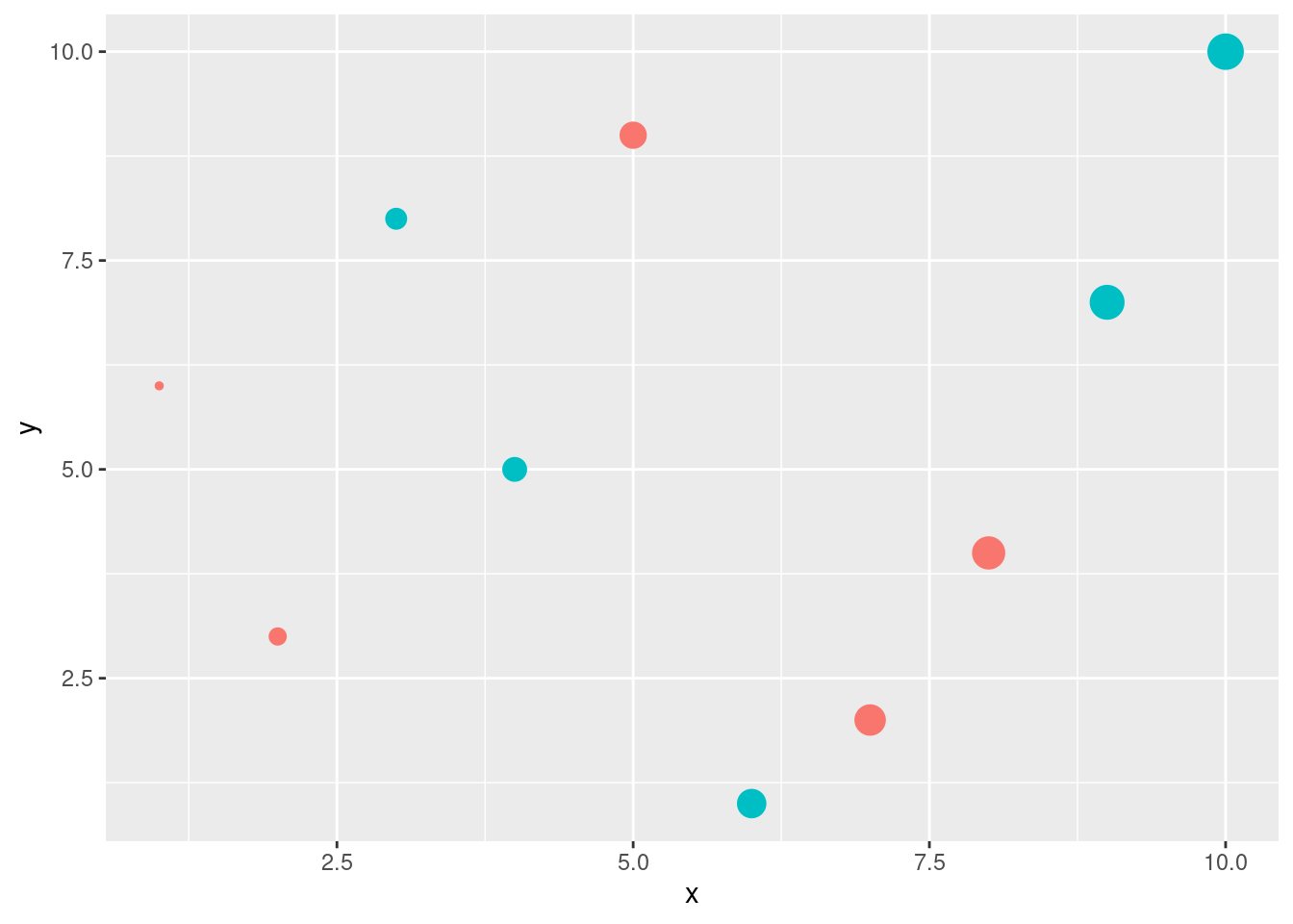 Aesthetics: visual property of the objects in a plot (e.g. size, shape or color )