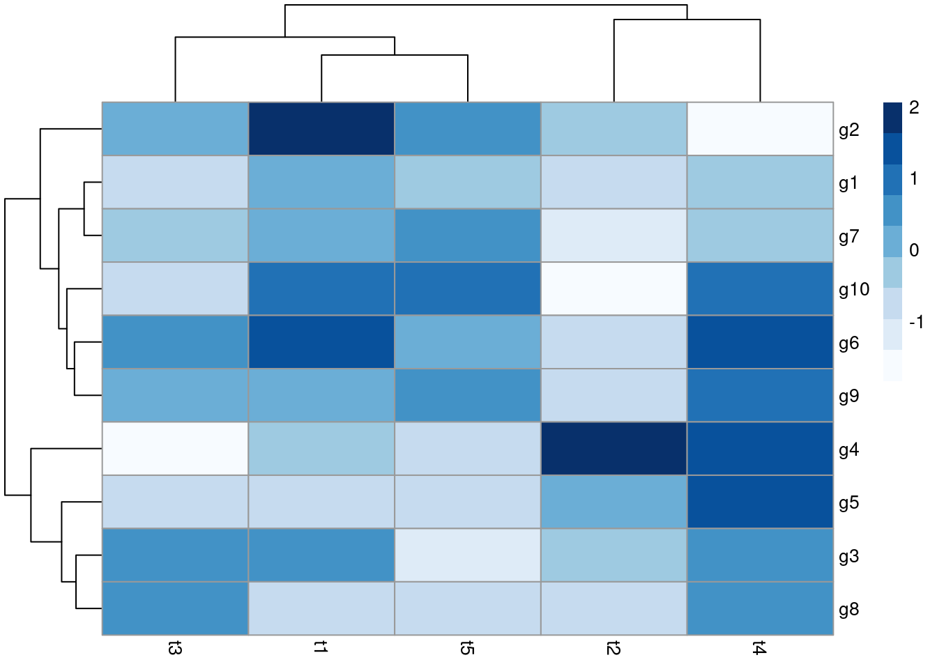 y <-matrix(rnorm(500), 100, 5, dimnames=list(paste("g", 1:100, sep=""), paste("Sample", 1:5, sep="")))y <-data.frame(Position=1:length(y[,1]), y)y[1:4, ] # First rows of input format expected by melt()